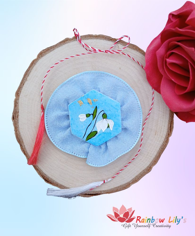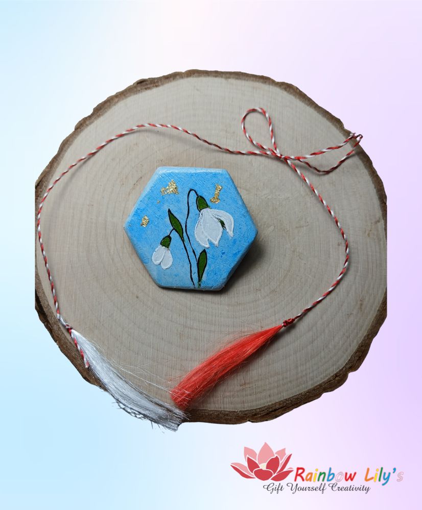 Acest mărțișor realizat manual este creat din material pe bază de lut. Modelat într-o formă hexagonală delicată, cu un diametru de aproximativ 3,5 cm. Fiecare piesă este pictată manual, ceea ce îi conferă un caracter unic și autentic.