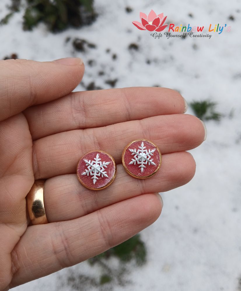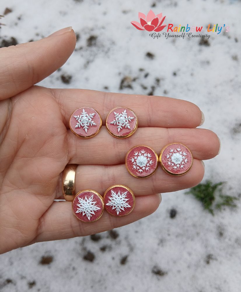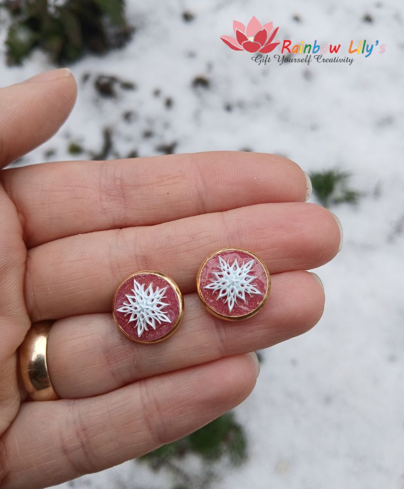 Cerceii Frozen sunt cercei handmade tip stud, cu diametrul de 14 mm, decorați cu fulgi de zăpadă 3D, realizați manual din gel. Inspirați din frumusețea iernii, acești cercei aduc un aer delicat, curat și elegant oricărei ținute.