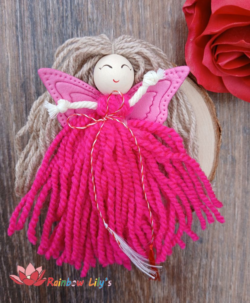 Fiecare zână ‘Fuchsia’ este o mică operă de artă. Creată cu dragoste și răbdare prin tehnica macrame. Nu este un produs de serie. Este o poveste țesută din fire delicate de bumbac și finisată cu detalii din lemn pictate manual. Acest proces artizanal garantează că zâna pe care o primești este unică. Ea poartă amprenta mâinilor care au creat-o.